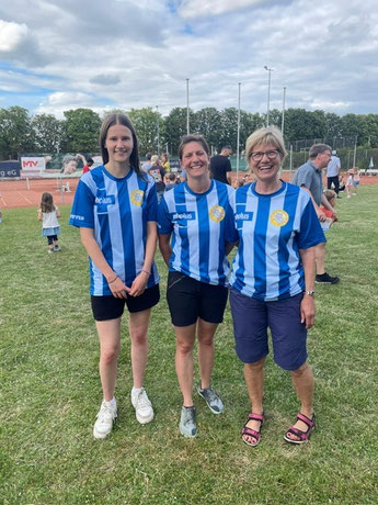 Die Übungsleiterinnen Anna Erdmann, Katrin Engel und Trautel Uhl führten mit viel Spaß und Sachkenntnis eine Vater-Kind-Aktion beim MTV Sportkindergarten durch. Insgesamt 64 Teilnehmer konnten beim Pfiffix Champs der mhplus Betriebskrankenkasse gemeinsam ihre sportlichen Fähigkeiten testen. Spielerisch waren 6 Stationen zu bewältigen: Ausdauer, Balance, Werfen + Fangen, Gesundes Essen + Trinken und den Drehwurm. Trotz der Hitze waren die Kinder und ihre Väter voll bei der Sache und machten begeistert bei der Aktion mit!